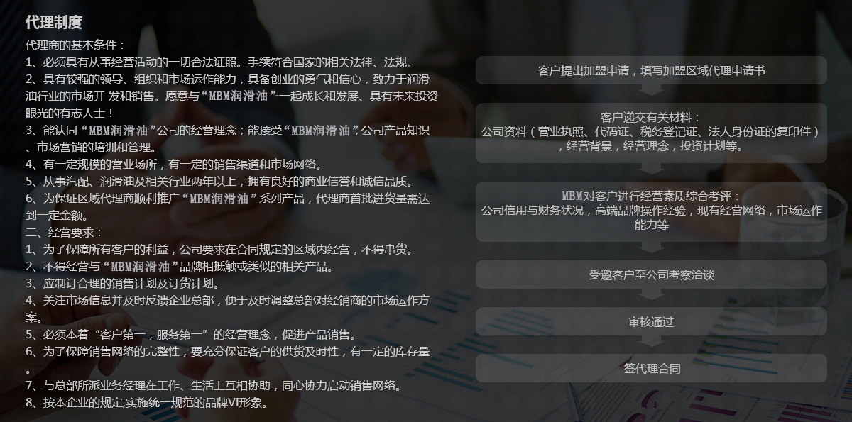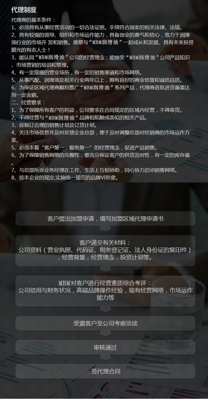 5、業(yè)務(wù)支持:不定期派遣業(yè)務(wù)管理人員、營(yíng)銷策劃人員、協(xié)助銷售人員幫助代理商開拓市場(chǎng)。